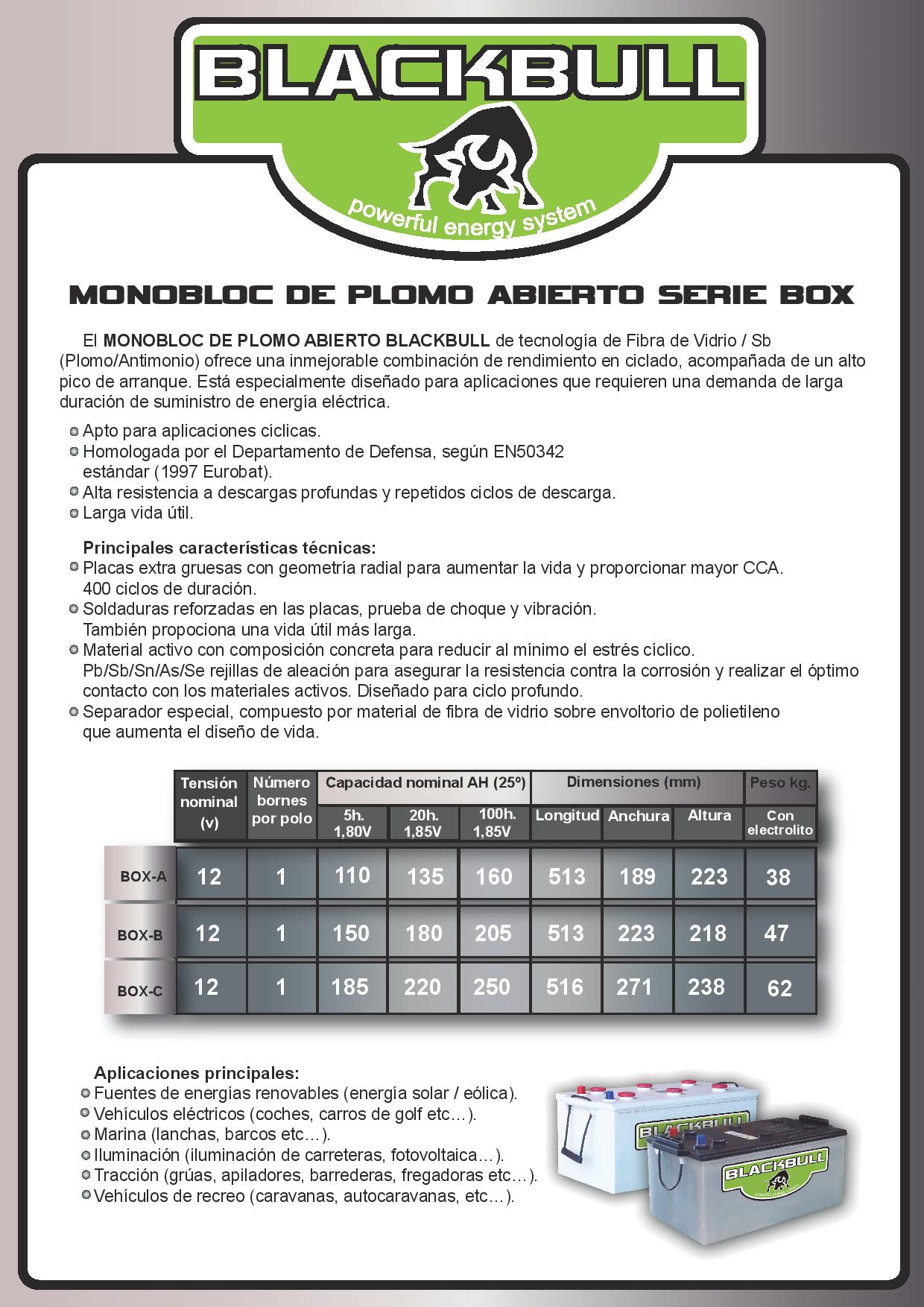 Batería Solar monobloc Blackbull PB-Acido abierta 12 voltios y 160Ah de capacidad a C100